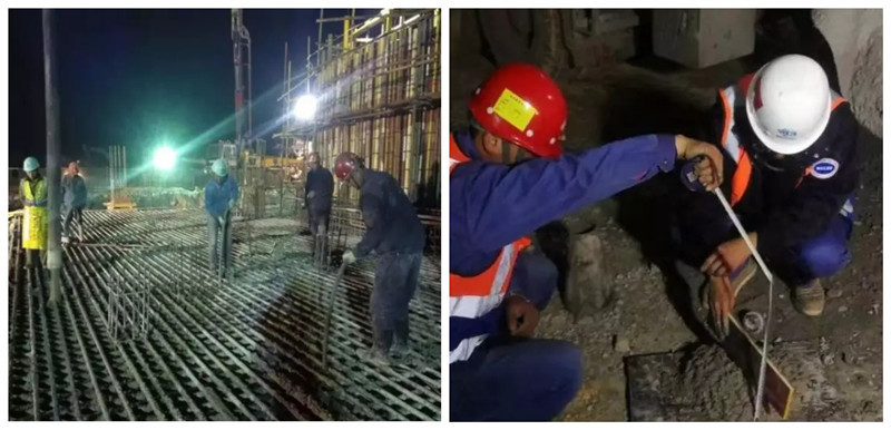 夜間澆筑施工                                                                 現場塌落度抽檢