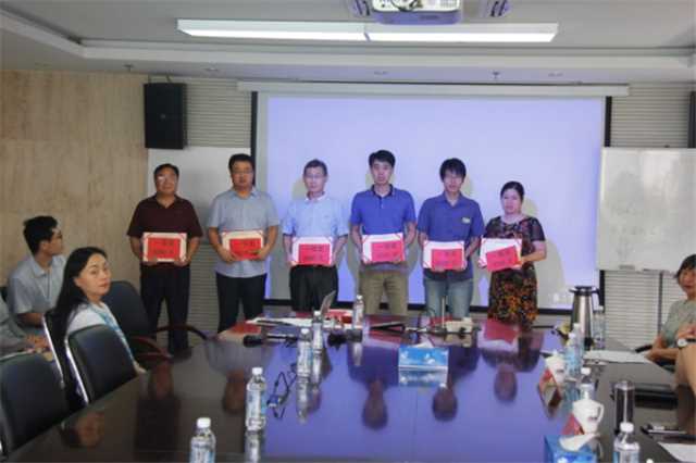 公司董事長魏新民、總經(jīng)理衣忠德給一等獎?wù)撐淖髡哳C發(fā)榮譽證書及獎勵。