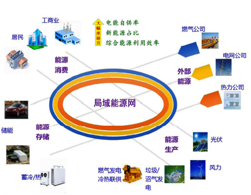 分布式能源以CCHP天然氣冷熱電三聯供為核心,光伏、生物質等多種清潔能源的匹配使用,結合溴化鋰制冷、空氣源熱泵、地源熱泵、水源熱泵等技術,為特色小鎮、大學城、醫院、機場、信息中心、養老院、商業綜合體 、美麗鄉村等區域解決供電、供暖、制冷的需求。